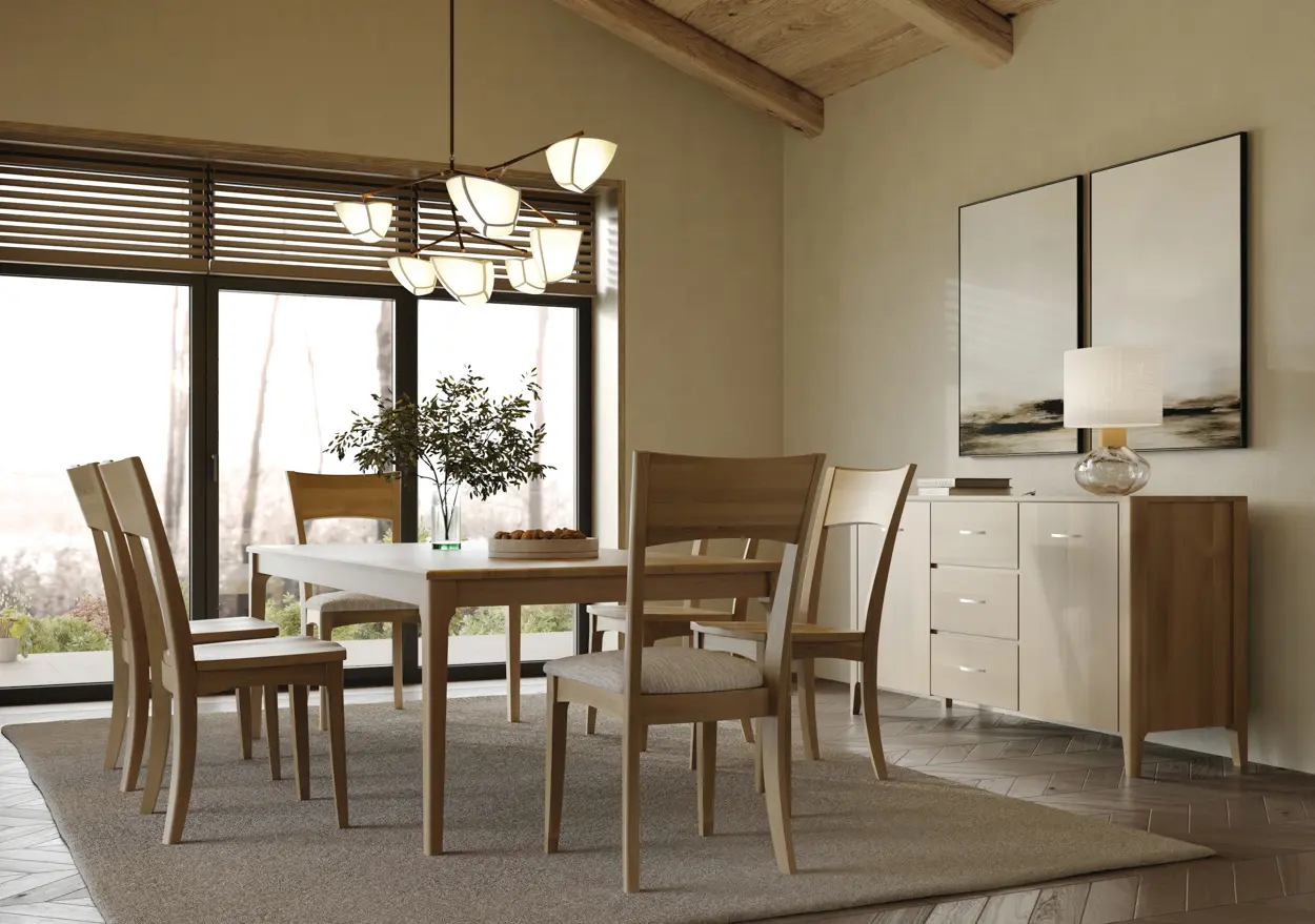 Crafted with clean lines and timeless character, the Afton Side Chair blends simplicity with subtle sophistication. Its gently curved backrest and wide, sculpted seat offer lasting comfort, while the tapered legs and contoured profile bring a modern touch to classic craftsmanship. Available in both upholstered and wooden seat. Choose from dozens of finishes. Not available in an arm chair.