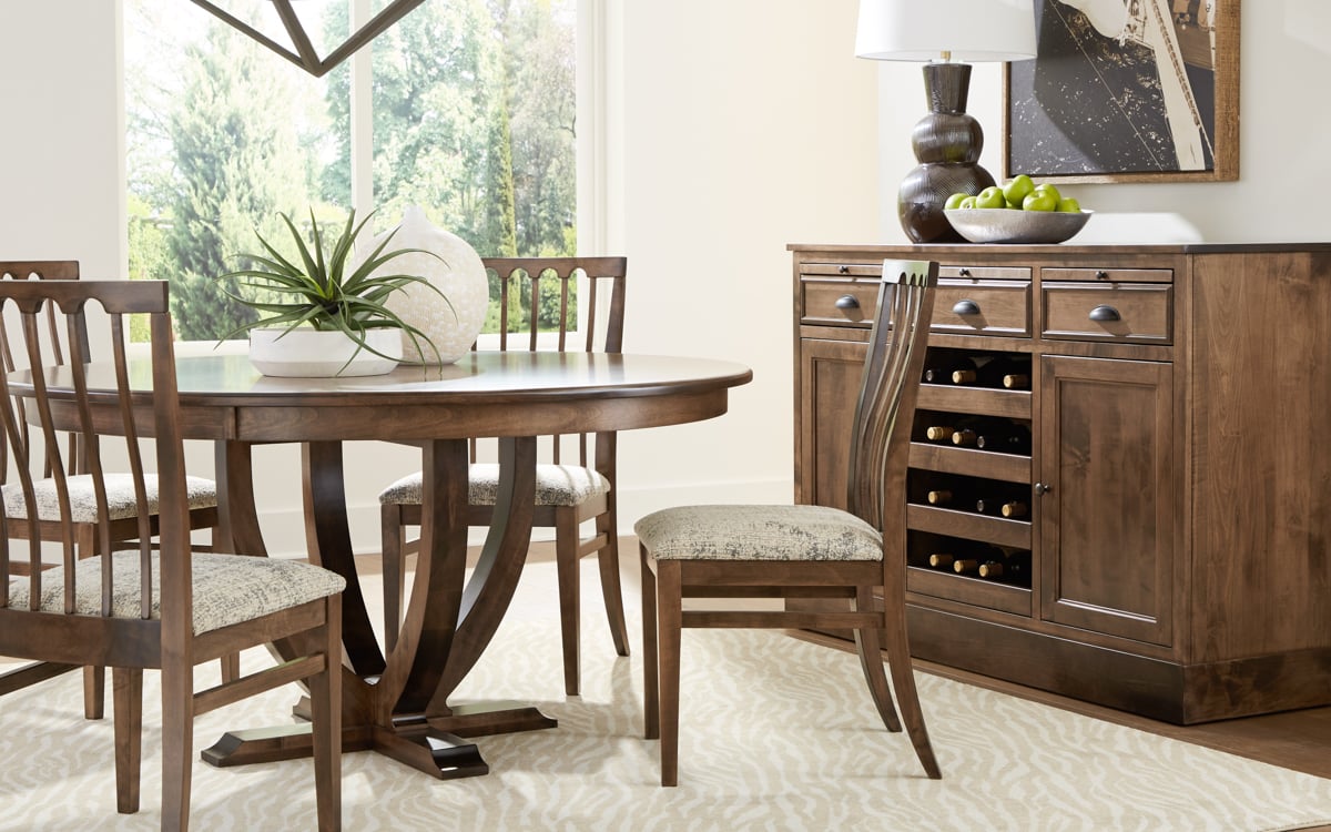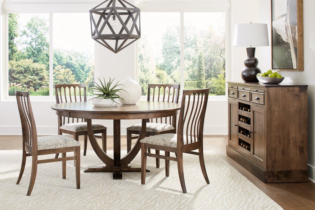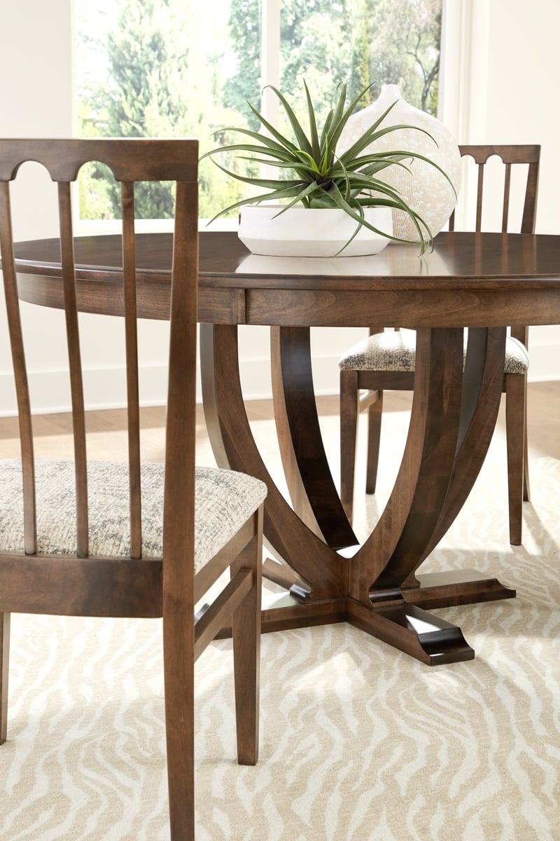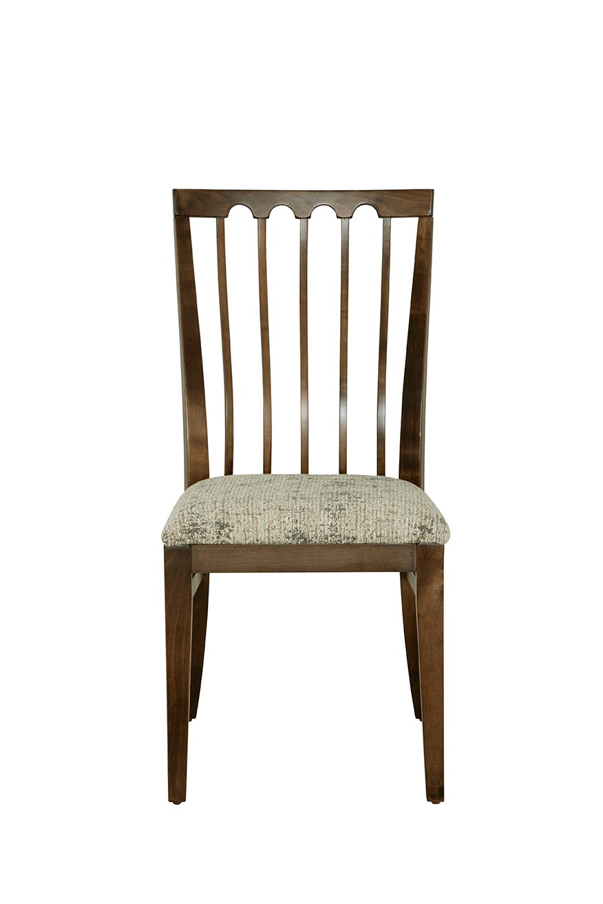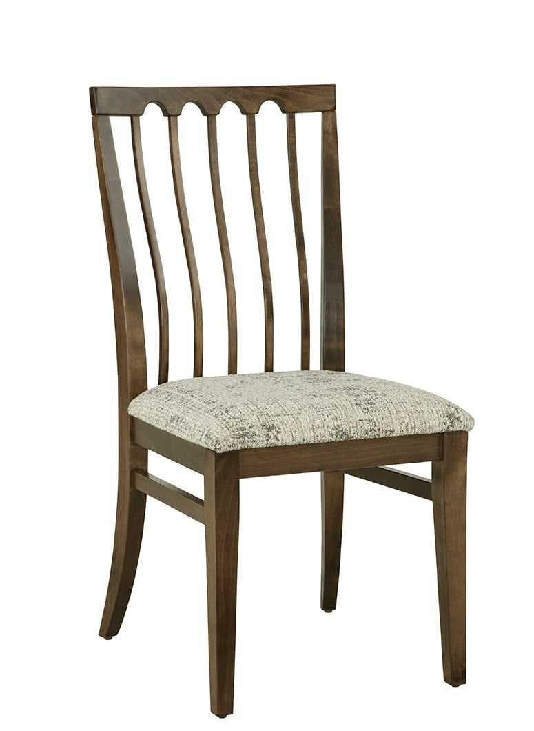 A sleek evolution to a timeless classic. Elegant curvature that breathes new life into any dining area coupled with elevated comfort makes this a perfect complement to any dining space. Also available in a dining chair with arms. Choose from multiple wood species, finishes, upholstery leathers and fabrics.