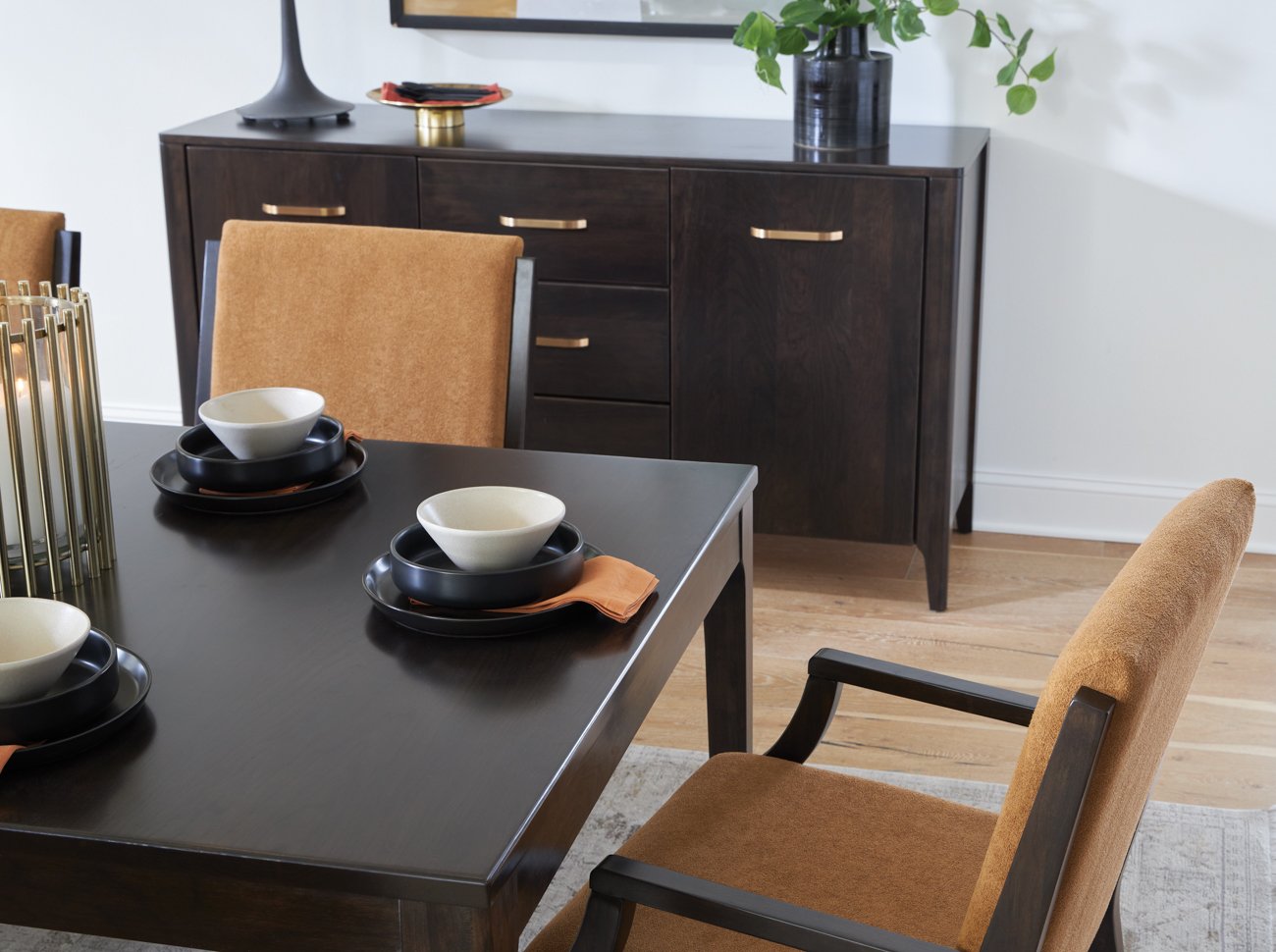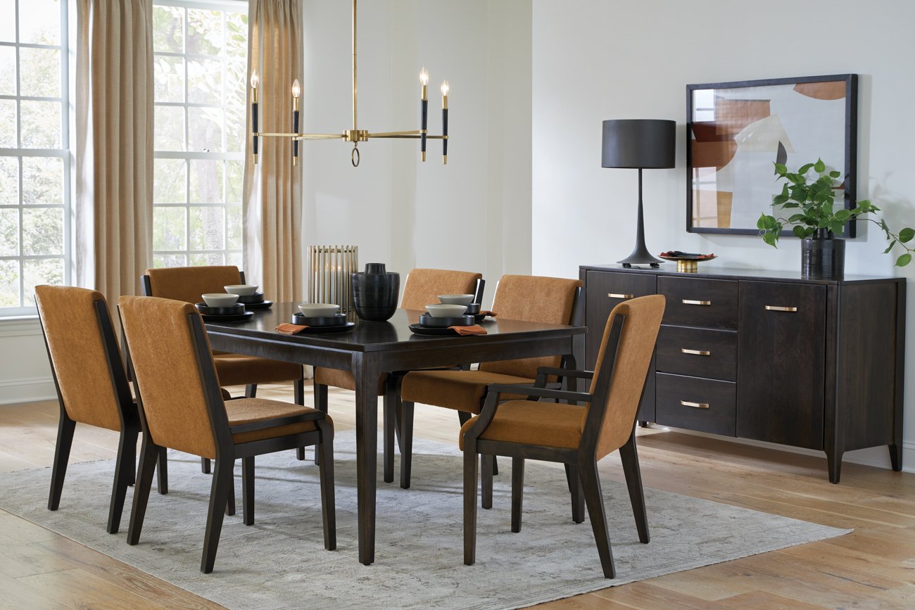 With a plethora of color options, this modern take on a mid-century classic catches the eye any room. Our fabric options allow you to make this chair unmistakably yours. Available in multiple wood species, finishes, and upholstery options. Also comes in an arm dining chair.