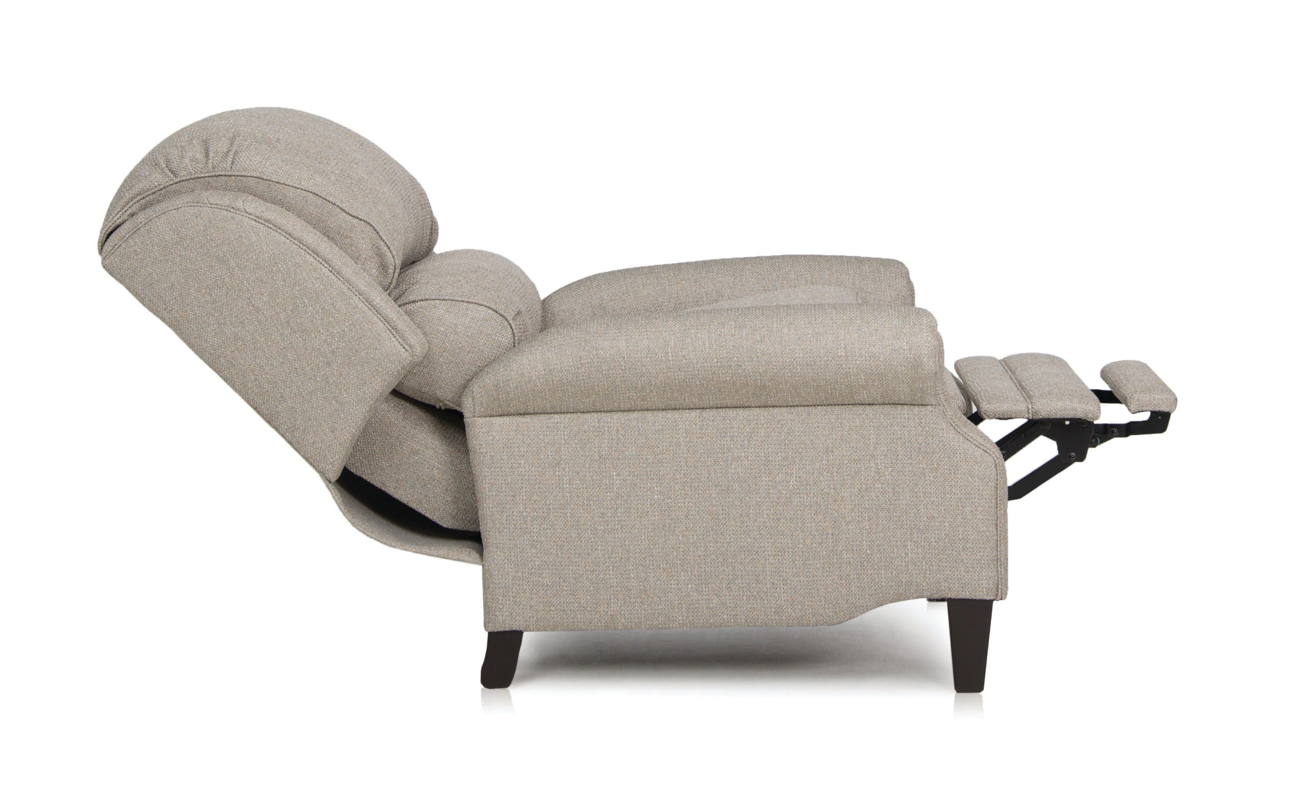 The 710 Recliner is a delightful accent piece. With a pillow top back, small scaled wings, tapered wood feet and rolled arms, this chair has a unique blend of styles that will complement any room decor. With the motorized feature, this piece will recline with convenience and ease. Choose from over 1,000 fabrics and 70 leathers, numerous leg finishes, nailhead options, and trims. All Smith Brothers furniture frames are made with Maple Hardwood and built to last a lifetime. Enjoy premium custom upholstery with unmatched comfort.