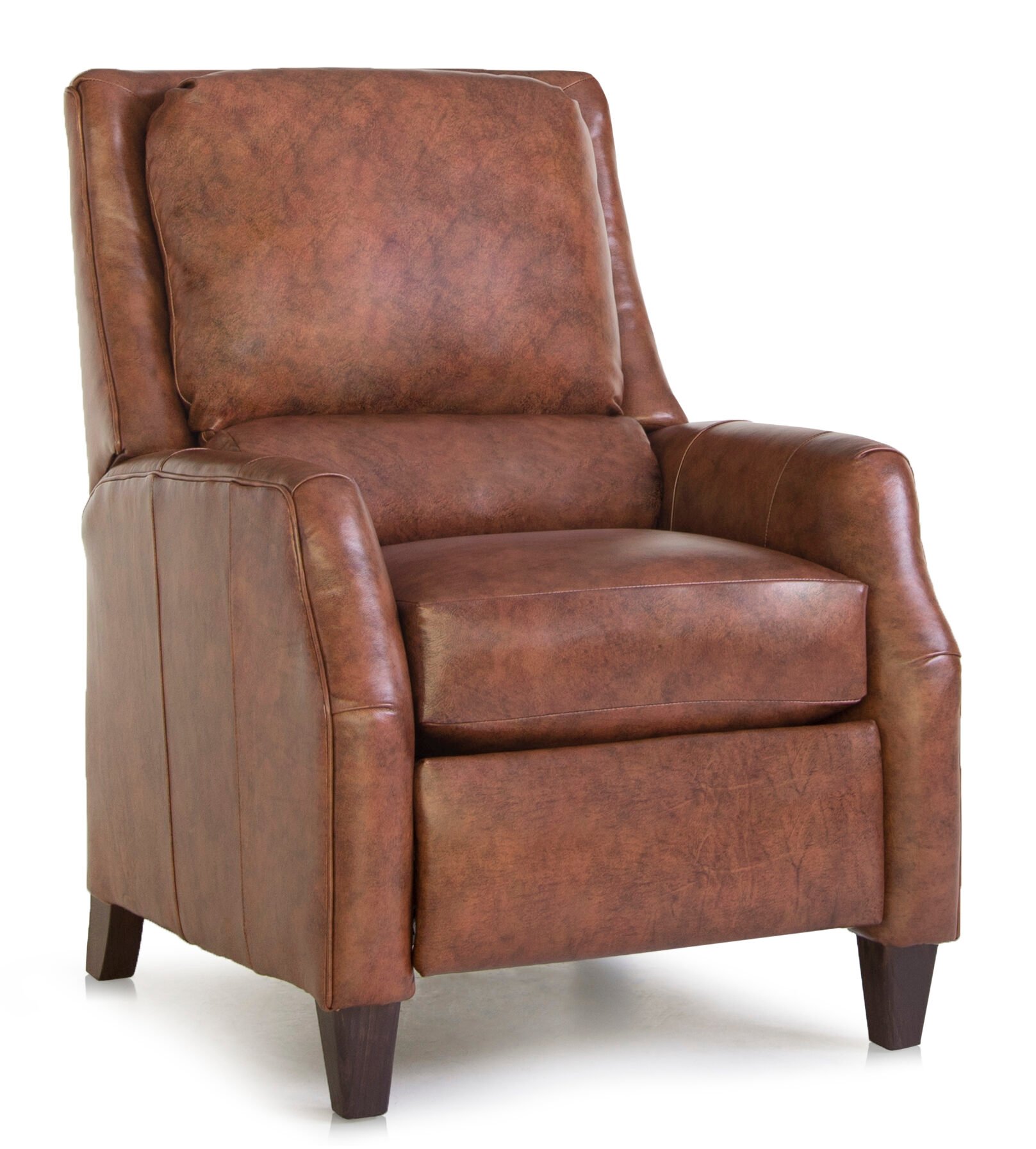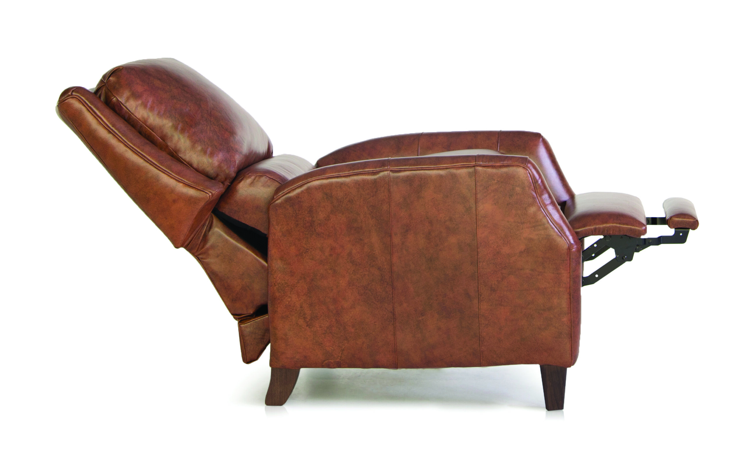 Traditionally styled, the 722 chair features a split semi-attached inside back. It is grandly-scaled for visual appeal and ultimate relaxation. “Comfort wrinkles” enhance the exceptionally soft feel of the seat and back cushions. Lifted on four exposed wooden legs, this recliner also has uniquely shaped curved track arms. This recliner is available as a three way recliner or power recliner with no handle or hidden levers. Also available in over a thousand fabrics, dozens of leathers, and multiple wood finishes.